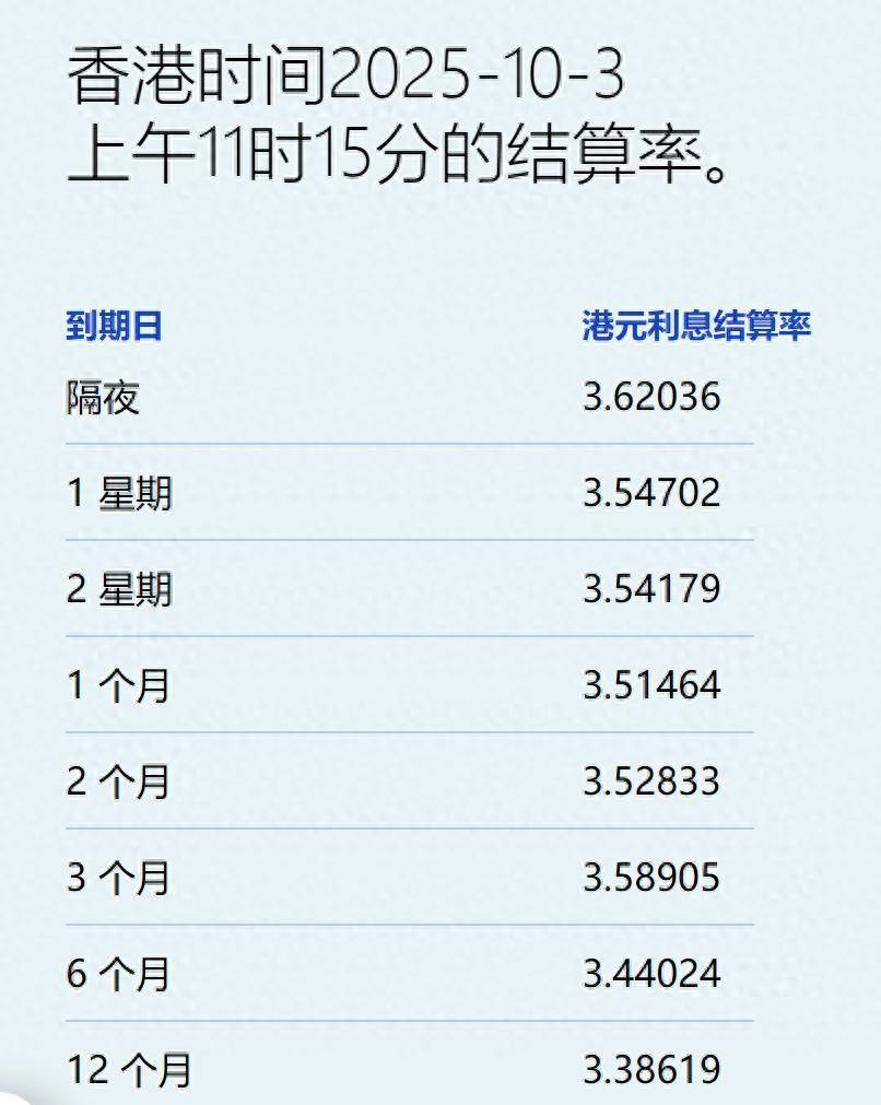 智通财经APP获悉,10月3日,港元拆息近乎全线上升丰泰优配,只有1年期拆息持平。与楼按相关的1个月拆息反弹约1.8个基点,升至约3.515%,结束5日跌势。隔夜拆息反弹2个基点,报3.62%。反映银行资金成本的3个月拆息连升两日,单日再升4.9个基点,报3.589%,创逾1星期新高。